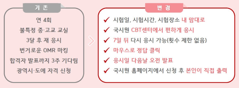 CBT는 컴퓨터 화면에서 문제를 보고 답을 선택하는 형식으로 이루어져 있어, 다른 종이 시험과는 다른 환경에서 시험을 보게 됩니다. 그래서 CBT 환경을 체험해보시고 시험에 응시하는 것이 좋습니다.