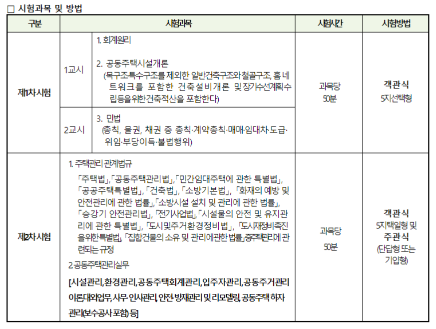주택관리사 시험 과목