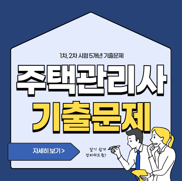 주택관리사 시험 준비에 있어 가장 중요한 것은 이전에 출시된 기출문제를 풀어보는 것이겠죠. 특히 1차 시험은 합격률이 10%대로 매우 어렵기 때문에 철저한 준비가 필요합니다. 최근 5개년 기출문제를 올려드릴테니 꼭 풀어보세요!